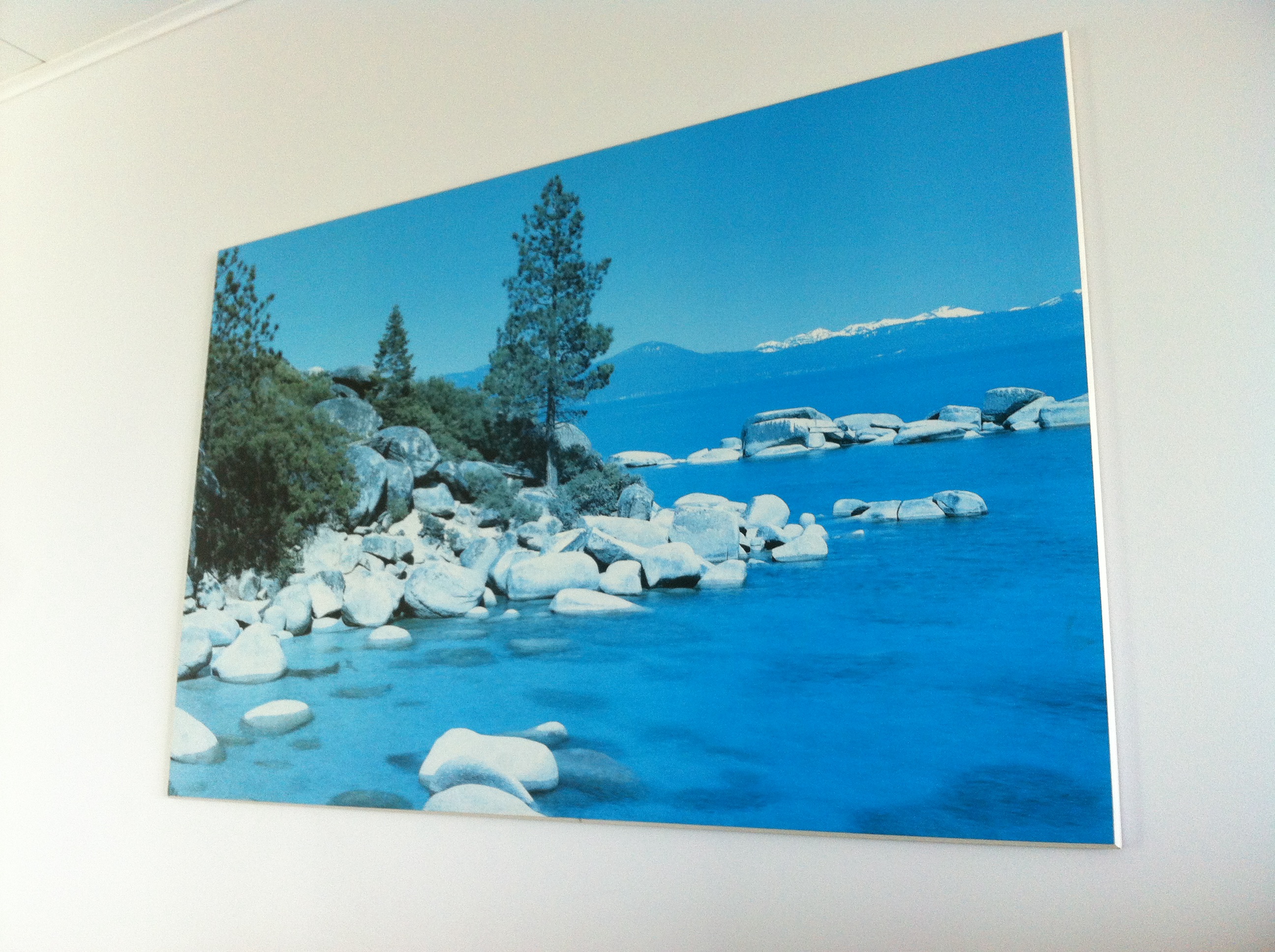 Dans la chambre, en face du lit, il y a une photographie d’un paysage marin. Une pointe rocheuse s’avance dans la mer, un conifère quelconque élève ses épines et il y a des monts enneigés au loin, de l’autre côté de l’eau. Les bleus sont trop bleus, les blancs trop blancs et les gris trop gris. Ça pourrait être ici ou ailleurs, peu importe. Comme si les voyageurs de passage pouvaient faire